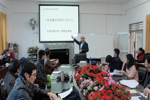 3月17日下午,我校新聘日语专业客座教授泉敬史先生应外语系之邀为全系教师作了题为“日语中的文字”的学术讲座。