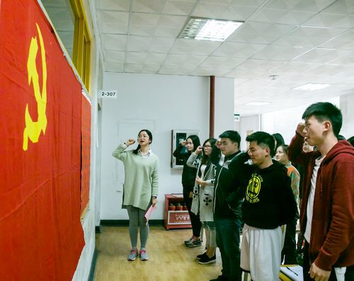 启动仪式结束后,学生党员面对鲜红的党旗,举起右手,重温入党誓词,部分学生党员代表在首次“沙龙”活动中就党规党章学习体会与大家进行了分享。