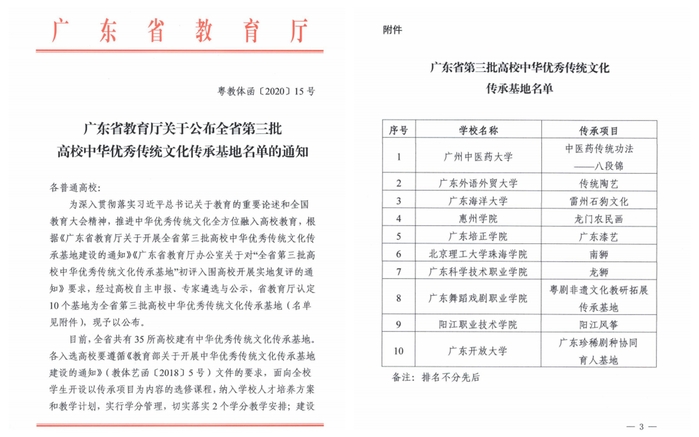 本网讯 近日,省教育厅公布广东省第三批高校中华优秀传统文化传承基地名单,我校申报的“龙门农民画”传承项目上榜,基地建设期为三年。