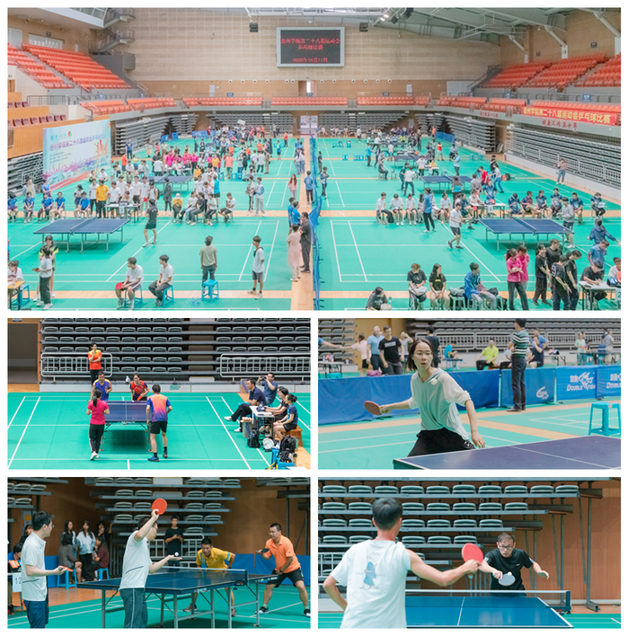 本网讯 10月17日,由校体育运动委员会主办,教务处、学生处、工会、团委和体育学院承办,教工乒乓球协会协办的第二十八届运动会乒乓球比赛在金山湖体育馆落幕。来自14个分工会和15个二级学院的300余名运动员分别参加了教工组和学生组的比赛。