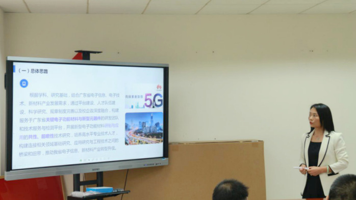 本网讯 10月30日,我校广东省电子功能材料与器件重点实验室(以下简称“重点实验室”)在行政楼408会议室召开实验室运行管理制度建设研讨会。会议邀请中国科学院华南植物园科技外事处处长、广东省科技基础条件平台建设促进会副会长陈峰研究员到会指导,我校副校长曹建忠,科研处、人事处、电子信息与电气工程学院、化学与材料工程学院负责人以及重点实验室骨干成员参加了会议。