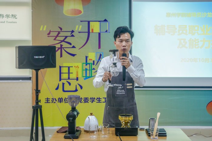 尼克工作室为与会老师带来了咖啡文化讲座并现场演示了咖啡的制作过程,让老师们在学习交流之余舒缓压力,放松心情。