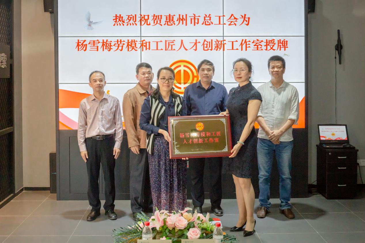 本网讯 11月12日下午,惠州市总工会到我校为杨雪梅劳模和工匠人才创新工作室授牌,授牌仪式在服装楼服装三维数字智能技术开发中心举行。惠州市总工会副主席曾红艳,我校副校长兼工会主席刘国栋、校工会、旭日广东服装学院负责人及师生代表参加授牌仪式。仪式由校工会常务副主席李富明主持。