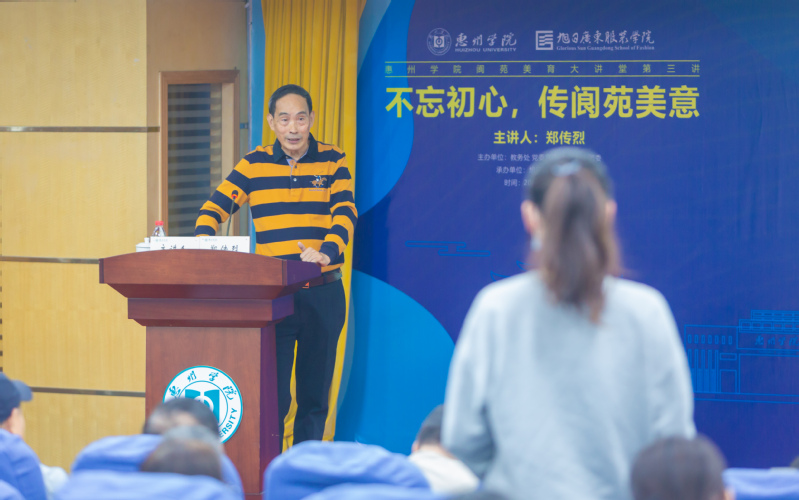 本网讯 11月13日上午,阆苑美育大讲堂第三讲在图书馆学术报告厅开讲,著名企业家、慈善家、摄影家郑传烈先生应邀作“不忘初心,传阆苑美意”专题讲座。我校原党委书记、肇庆学院原党委书记、惠州经济职业技术学院党委书记、校长陈优生教授,五邑大学原副校长、我校旭日广东服装学院特聘教授狄剑锋,著名摄影家黄妙真女士,旭日集团行政管理办公室助理总监单陈,我校工会、图书馆、旭日广东服装学院有关负责人以及各学院师生代表共同聆听讲座。讲座由旭日广东服装学院党总支书记曾裕林主持。
