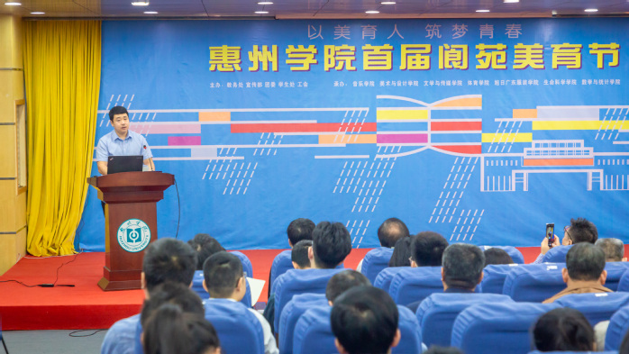 本网讯 11月13日上午,我校首届“阆苑美育节”开幕式在图书馆学术报告厅举行,广东省教育厅体卫艺处艺术专干、科长罗昆,惠州市教育局三级调研员秦昌俊,我校党委副书记、纪委书记、省监委驻惠州学院监察专员罗川山,副校长刘国栋,惠州城市职业学院副校长李立高、惠州市实验中学党委书记周秀华,惠州市各类学校教师代表,我校职能部处、二级学院相关领导等参加了开幕式。开幕式由刘国栋主持。