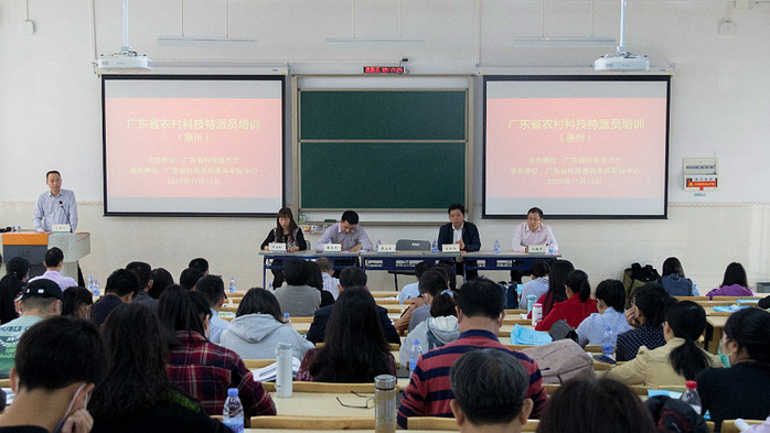 本网讯 11月13日,由广东省科技基础条件平台中心组织开展,以粤东西北为重点的农村科技特派员专题培训活动在我校教学实验大楼306教室开展。培训活动采取线上直播+现场培训的模式进行。我校50余名农村科技特派员队伍参加现场培训。培训由广东省科技基础条件平台中心卢卫仪部长主持。
