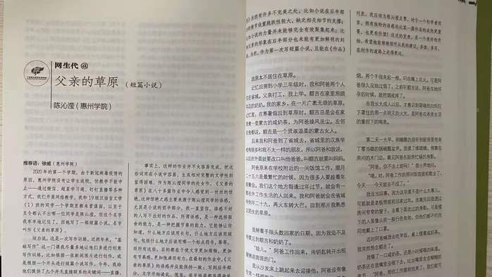 据不完全统计,近两年来,文学与传媒学院已有十余位学生在《诗刊》《作品》《羊城晚报》《佛山文艺》《嘉应文学》《大亚湾文艺》等刊物发表诗歌、小说、评论等作品48篇(首)。学院负责人介绍,作品得以公开发表,是学生写作能力得到有效提升的证明,同时也有力地激发了学生的创作热情与创作自信,促使学生进一步提升写作能力。