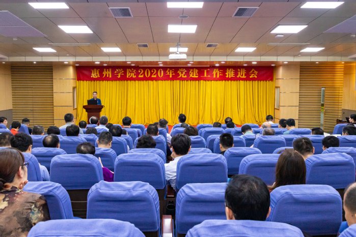 本网讯 为深入学习贯彻习近平新时代中国特色社会主义思想和党的十九大精神,落实新时代党的建设总要求,积极探索党建工作新思路、新方法,提升学校党建工作质量,11月17日下午,我校2020年党建工作推进会在图书馆学术报告厅举行,全体校领导、全体中层正职干部(含参照管理干部)、党委有关职能部门副职,全体党总支副书记,惠州经济职业技术学院党支部书记及党务干事代表,学校教师党支部书记、组织员、辅导员及师生党员代表共240余人参加会议。会议由党委副书记、纪委书记、省监委驻惠州学院监察专员罗川山主持。