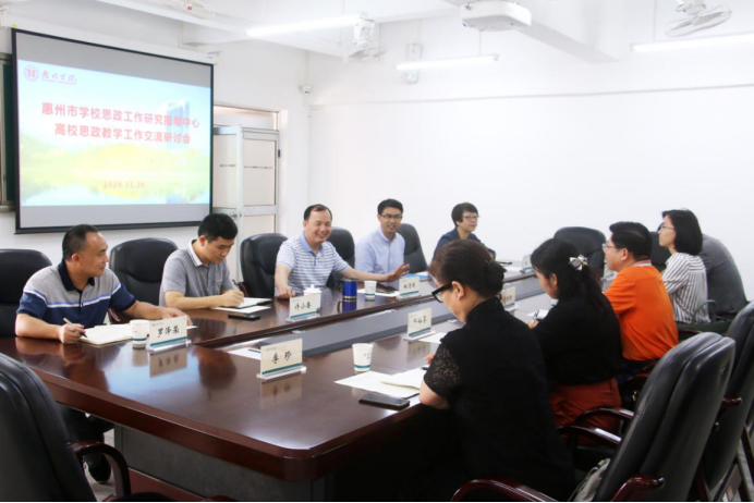 本网讯 11月20日,惠州市学校思政工作研究指导中心在我校马克思主义学院举行“惠州高校思政课教学工作交流研讨会”,惠州市教育局思政法规科科长刘洪新,我校马克思主义学院党政班子成员及教研室主任,惠州市经济职业技术学院等四所高职院校马克思主义学院院长参加了会议。