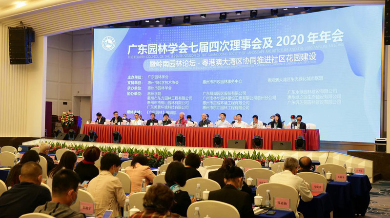 本网讯 广东园林学会七届四次理事会及2020年年会暨岭南园林论坛-粤港澳大湾区协同推进社区花园建设会议于11月27--28日在惠州康帝宾馆召开。会议由广东园林学会主办,惠州市园林学会承办,惠州市科学技术协会、惠州市政园林事务中心、粤港澳大湾区生态绿化城市联盟为支持单位,我校等11家企事业单位为协办单位。我校生命科学学院王建兵教授代表惠州作主题报告,学校派出30多名园林专业学生志愿者进行会议志愿服务。
