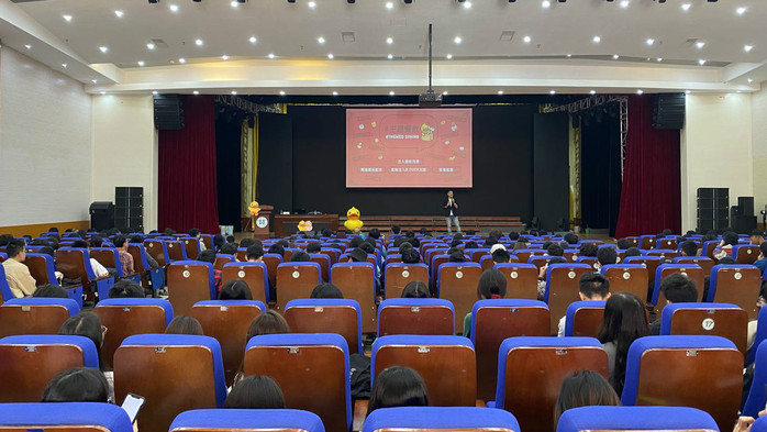 讲座中,许夏林先生通过视频介绍了公司基本情况,并向同学们讲述了他创立B.DUCK的初心——希望创作一个可爱的鸭子陪伴孩子长大。公司致力于打造中国最大的自主品牌IP,从2010年起,大力拓展品牌的授权业务,同多个自媒体平台、多个知名品牌联名合作进行品牌宣传和推广;同时,为了防止品牌老化、扩大品牌适用群体,公司不断进行IP优化及品牌品类延伸,B.DUCK连续两年荣获中国第三大自主IP。至今,小黄鸭的品牌授权费已超过100亿元,小黄鸭产品已推广到生活的方方面面。