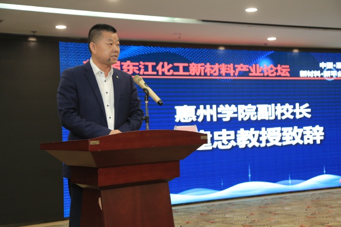 论坛开幕式上,我校副校长曹建忠发表致辞。他介绍了我校坚实的人才基础及学校“新工科、新师范、新文科”的办学理念,深入推进“创新强校工程”,主动对接惠州行业和主导产业需求,深化校政行企协同合作,培养新时代高素质应用型人才,推动学校逐步成为地方经济社会发展需要的高素质应用型人才培养基地、经济文化社会思想智库。他认为,在本次论坛中汇聚各方专家学者和企业家代表,能为惠州乃至粤港澳大湾区化工新材料领域的人才培养和产业发展提供新方向、激发新思想。最后,他希望,通过这次论坛,学校与企业间能加深友谊、合作共赢,加强技术交流,强化项目合作,携手前进,共创美好的未来。