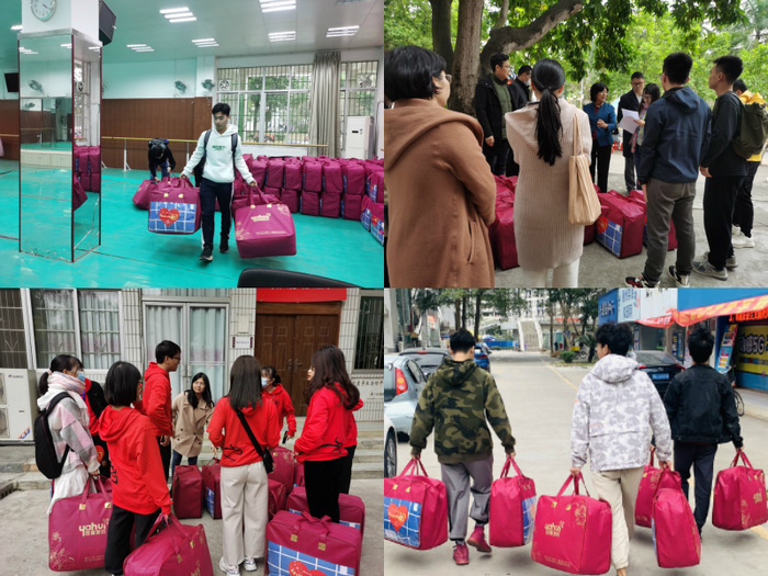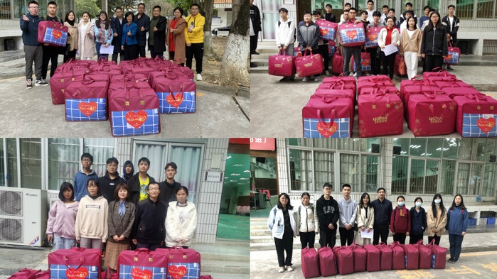各二级学院相关负责人、辅导员和学生志愿者领取冬被