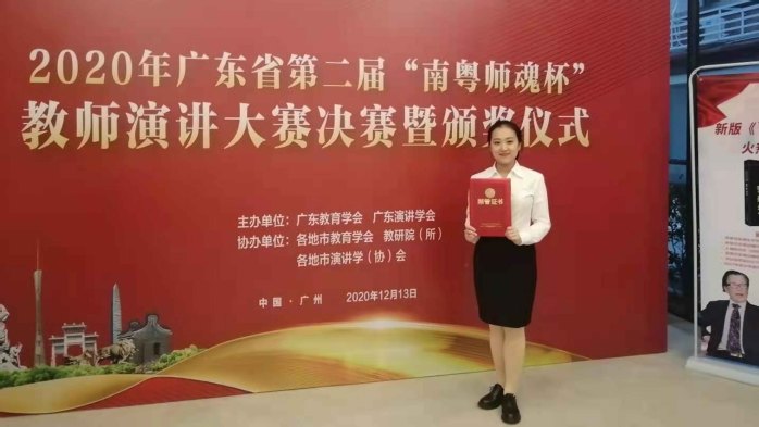 本次比赛由广东教育学会、广东演讲学会联合主办。大赛自2020年6月份启动,共吸引了来自全省4万多所中小学幼儿园、几十所含师范生的高校上百万人报名参赛,最终选出53位选手参加决赛,其中大学生组15人、小幼教师组18人、中学教师组10人、培训教师组10人。该项赛事旨在激励广大教师,提升语言表达力和授课水平,展现爱岗敬业,立德树人、铸魂育才之教育精神。教学科学学院选送的陈铱楦同学历经初赛选拔,顺利突出重围,跻身决赛,充分展示了学院学子的风采及学院师范教育的优良成果。