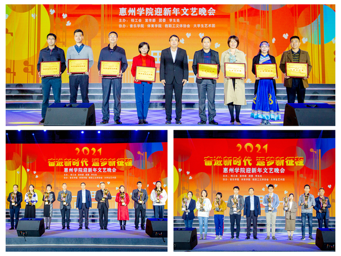 本网讯 12月29日晚,我校“奋进新时代 逐梦新征程”2021年迎新年文艺晚会在金山湖体育馆举行。校党委副书记、纪委书记、省监委驻惠州学院监察专员罗川山,副校长许玩宏、刘国栋、郑文、曹建忠以及师生代表1000多人观看了晚会,共迎2021年的到来。