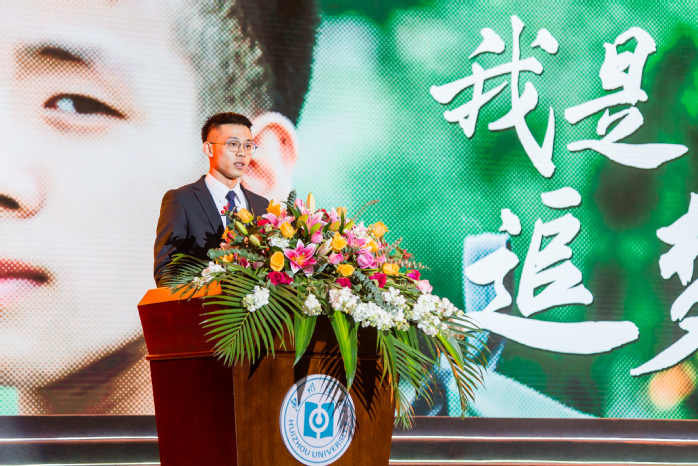 电子信息与电气工程学院王健颖同学作为获奖学生代表发言,他分享了自己虽为特困生但仍勇于追梦的感悟,他认为,学校各类学科竞赛、文体活动、志愿活动值得大家积极参与,只有端正学习态度,合理规划时间,才能使自己德智体美劳全面发展。他作为班长,用行动感染身边同学,带领班集体共同进步,全班挂科人次从30余人次降为1人次,该班同学还荣获诸多学科竞赛奖项。