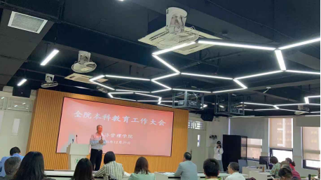 经济管理学院提出了育人六要素,即学生中心、教师为重、课程为先、专业为本、质量为王、组织为基,提出未来要通过党建引领三全育人,致力于打造高质量的教学发展、准一流的管理典范,并将围绕新文科建设的内涵,努力提高应用型经管类人才培养质量。