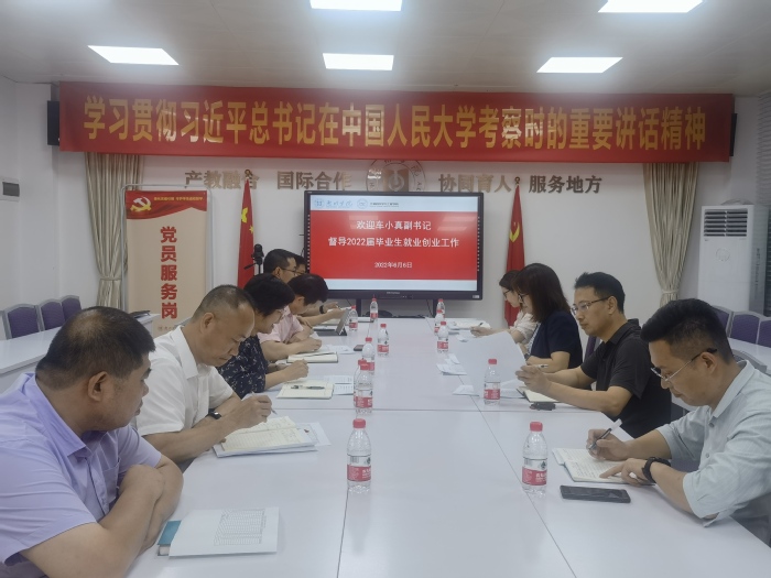 本网讯 为进一步做好学校毕业生就业工作,抢抓毕业生求职冲刺期,全力保障我校2022届毕业生更充分更高质量就业,6月6-7日,党委副书记车小真先后深入部分二级学院调研毕业生就业创业工作,督促二级学院加快推进毕业生就业创业工作。相关二级学院班子成员、毕业班辅导员以及班主任参加会议。