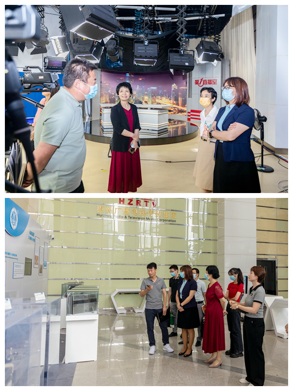 本网讯 6月7日上午,学校党委副书记车小真率党委宣传部融媒体中心一行到惠州市广播电视台交流座谈。市广播电视台党委委员、副台长、电视台台长杨成联,电视台副台长彭染红,融媒体中心策划总监梁耀广、运营总监刘付龙,电视台制作部副主任、直播组组长黄楚梁,电视台民生新闻部副主任余梦以及融媒体中心编辑张娜参加会议。会议由杨成联主持。