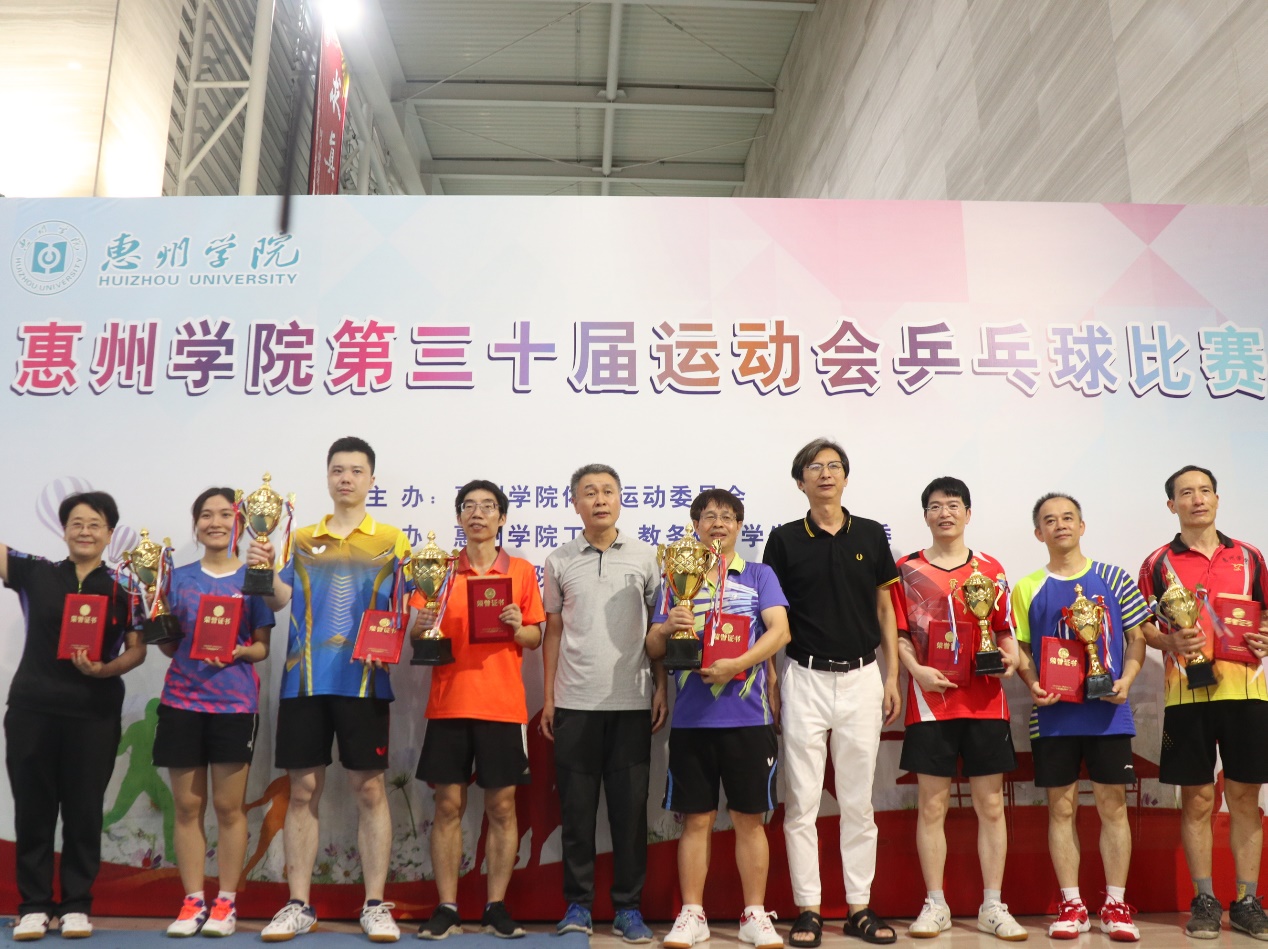 经过激烈角逐,化学与材料工程学院队、电子信息与电气工程学院队、数学与统计学院队获得教工团体冠亚季军。机关分会联队、外国语学院队、旭日广东服装学院队、经济管理学院队和马克思主义学院队分获第四至八名。