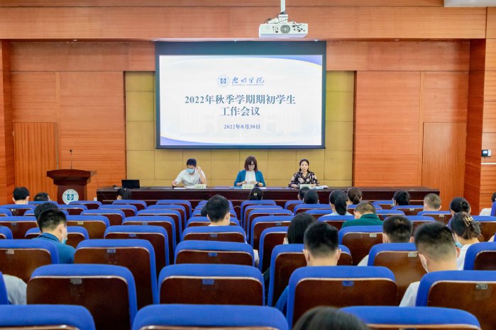 本网讯 8月30日上午,我校在文城会议厅召开2022年秋季学期期初学生工作会议,学校党委副书记车小真,学生处、团委负责人,各二级学院党总支书记、副书记和全体辅导员参加会议。会议由学生工作处处长胡萍主持。