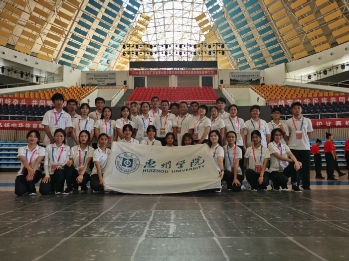 受惠州市统战部、惠州市文化广电旅游体育局委派,我校积极组织28名少数民族学生组建民族健身操和毽球队代表惠州市参赛。两个代表队的参赛队员均于学校少数民族学生中选拔,全部零基础,训练难度大,备赛期间,教练员和队员们克服种种困难,利用中午休息时间刻苦训练,暑假期间提前回校集训。比赛过程中,队员们展现出良好的精神风貌和拼搏意识。经过激烈争夺,民族健身操队为惠州市代表团获得42分,取得规定套路第四名、自选套路第四名、总成绩第五名的优秀战绩;毽球队为惠州市代表团获得24分,取得女子团体第七名;4名运动员获得大会“体育道德风尚运动员称号”。