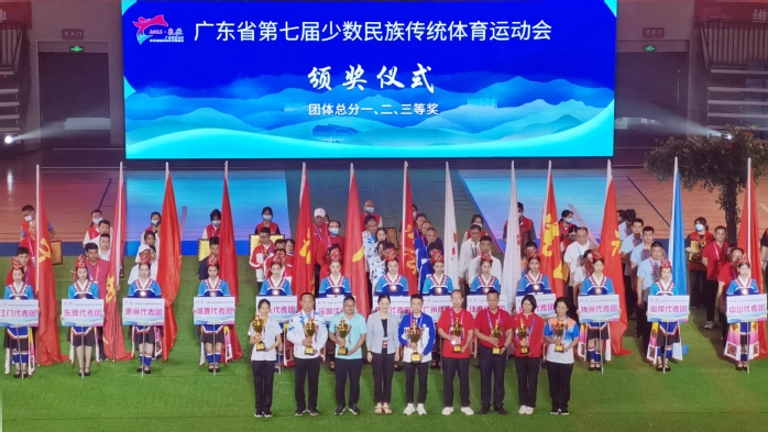 本网讯 广东省第七届少数民族运动会于8月23-27日在韶关市乳源县举行。惠州代表团共参加13个竞赛项目和两个表演项目的比赛,斩获团体总分二等奖(全省第四名)的优异成绩。我校组织28名少数民族学生分别组建民族健身操和毽球队代表惠州市参赛并获佳绩。