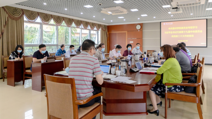 党委副书记、纪委书记、省监委驻惠州学院监察专员罗川山表示,习近平总书记所作的报告通篇闪耀着马克思主义的真理光辉,是以中国式现代化全面推进中华民族伟大复兴的政治宣言和行动纲领。通过近期多种形式的学习领会,让我们有了更深刻的学习体会。一是对大会主题有了更深刻的认识,大会主题阐明了我们党举什么旗、走什么路、以什么样的精神状态、朝着什么样的目标奋勇团结前进等重大问题。二是对新时代十年的伟大变革有了更深刻的认识,尤其是“三件大事”和16个方面的伟大成就,勾画出了我们党在新时代十年里实现伟大变革的历史轮廓,视野宏阔,令人振奋。三是对新时代新征程中国共产党的使命任务有了更深刻的认识,作为高校纪检监察干部,要以高度的政治自觉在全面从严治党永远在路上、自我革命永远在路上的伟大实践中勇于履行政治承诺。