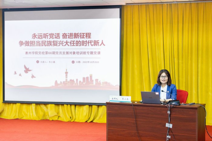 本网讯 10月20日晚,党校第66期党员发展对象培训班开班。校党委副书记车小真以“永远听党话,奋进新征程,争做担当民族复兴大任的时代新人”为题,为235名培训班学员深入解读党的百年奋斗的初心使命,带领学员深刻领悟党的二十大报告精神,勉励全体学员做担当民族复兴大任的时代新人。