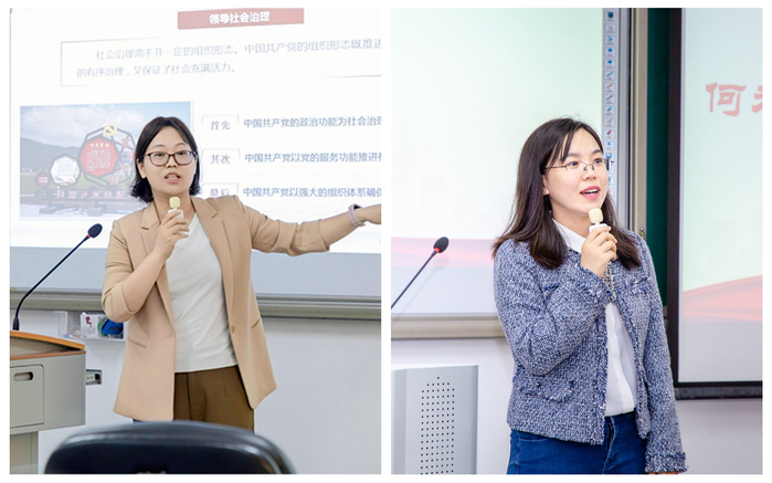 思政课教师代表石瑞丽、王瑶作课堂教学现场展示