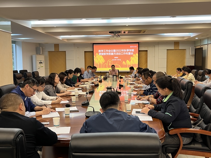 本网讯 11月1日,学校在行政楼202会议室召开2022年秋季学期课堂教学质量月活动工作布置会。副校长郑文,教务处、教师发展中心、网络与信息中心负责人,各二级学院教学副院长及教务处相关人员参加会议。会议由教务处负责人主持。