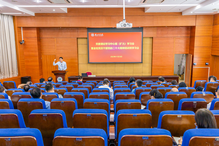 全体校领导,全体中层正职干部(含主持工作副职),正处级组织员,五级职员,党的二十大精神宣讲团成员,副处级、科级、挂职干部代表,各民主党派和统战团体负责人参加学习。