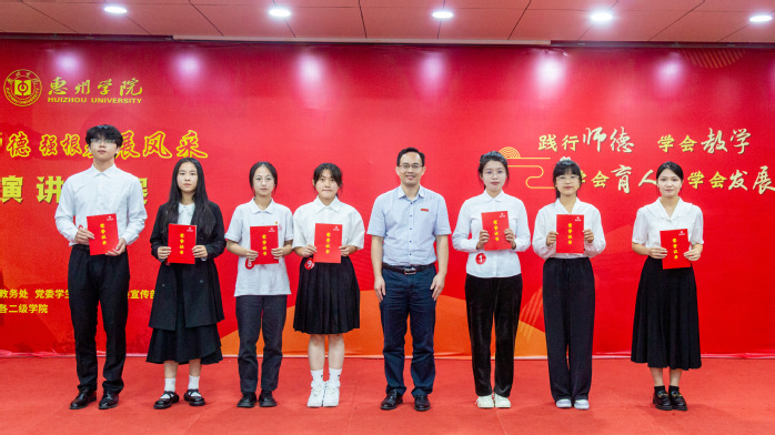 教务处处长陈益智在致辞中指出,学校通过以专业认证为抓手,全方位改造师范类专业;深化与地方政府和中小学、幼儿园的“U-G-S”三位一体协同培养机制,构建“人才培养合作共同体”;实施“全方位、全过程”师德养成教育,分层次、分阶段落实师范生师德养成教育体系等举措,全面提升师范生培养质量。他强调,学校将师范生师德养成教育贯穿于人才培养全过程,构建认知学习、主题活动、实践体验、环境营造“四位一体”的师德养成教育体系,全员、全过程、全方位地实现对师范生的师德养成教育,切实提高师范生师德养成教育效果。他希望同学们能够通过师德主题演讲这类有形的活动载体,将师德规范内化为自己的行为准则,着力提升教师职业道德品质。