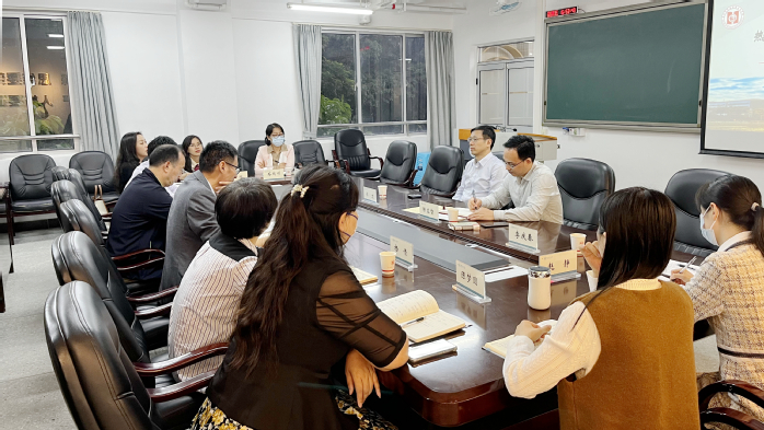 调研期间,郑文与教务处、教师发展中心、网络与信息中心相关负责人通过现场课堂教学视频监控,调阅听取思政课教师的授课情况,了解思政课堂教学改革进展和效果。听课结束后,郑文一行与马克思主义学院党政班子、教研室主任在旭日大楼228会议室就如何更好推进思政课建设与教学改革进行座谈。