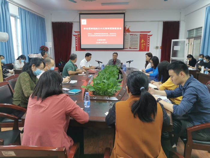 罗川山从全面学习贯彻党的二十大精神出发,指出要把深入学习党的二十大报告作为入门的“金钥匙”,并从“深入学习贯彻党的二十大精神重大意义”“党的二十大精神主要内容”“党的二十大精神给高等教育发展的科学指引”三方面进行阐述。他强调,认真学习领会党的二十大精神及其核心要义,一是要深刻领会党的二十大主题;二是要深刻领会新时代10年的伟大变革,特别要理解“两个确立”是我们党在新时代取得的重大政治成果;三是要深刻领会开辟马克思主义中国化时代化新境界;四是要深刻领会新时代新征程中国共产党的使命任务;五是要深刻领会中国式现代化的中国特色和本质要求;六是要深刻领会和把握新时代党的建设总要求。他强调,党的二十大报告明确指出:“教育、科技、人才是全面建设社会主义现代化国家的基础性、战略性支撑。”要务必切实贯彻有关教育的重大部署并有效落实到学校、学院改革发展实践中,进一步落实立德树人根本任务,完善学校管理和教育评价体系等改革,在学校高质量发展进程中贡献应有力量。