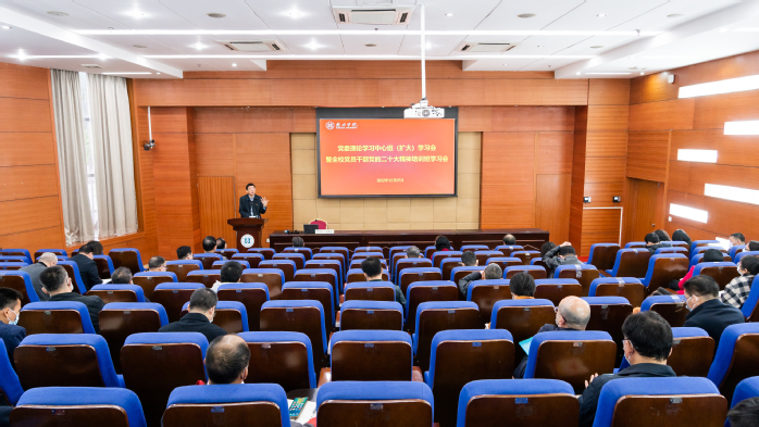 全体校领导,全体中层正职干部(含主持工作副职),正处级组织员,五级职员,党的二十大精神宣讲团成员,副处级、科级、挂职干部代表,各民主党派和统战团体负责人参加学习。