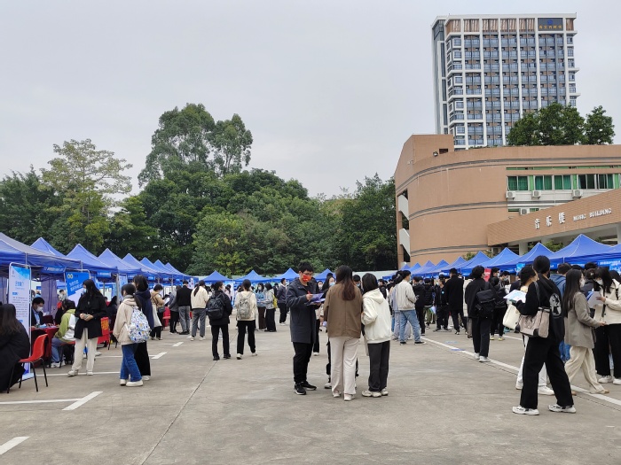 本网讯 12月11日下午,惠州市人力资源和社会保障局与我校联合举办的2023届毕业生秋季供需见面会在音乐楼小广场举办。