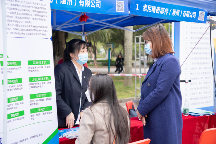 为确保本次供需见面会顺利举行,我校学生处制定周密工作方案,根据毕业生需求、专业匹配度等原则,精心挑选了80家优质企业到校招聘毕业生,力求做到“小而精、专而优”,促进毕业生精准匹配岗位,助力毕业生找到满意的工作。在参展的企业中,有世界500强的索尼、恒力石化、华润水泥、住润、亿纬锂能等,还有光大水泥、德赛、康冠、龙旗、伯恩光学、利元亨等中国500强以及本土优质企业,覆盖制造、电子、信息传输、软件和信息技术服务、科学研究和技术研发、建筑、金融、教育等众多领域,企业专业需求覆盖了学校所有专业,共提供3730个岗位。