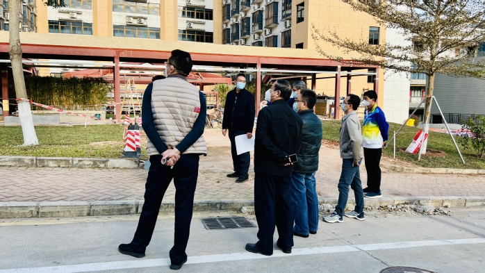 本网讯 为确保学校学术交流中心2#中庭改造项目施工安全和施工质量,进一步推进建设进度,12月20日下午,校党委书记、校长彭永宏,校党委副书记、纪委书记、省监委驻惠州学院监察专员罗川山,副校长许玩宏深入项目工地现场检查项目建设推进情况,党委宣传部、后勤管理处、基建管理中心及施工单位等相关负责人陪同检查。