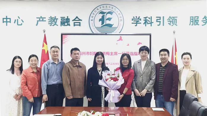 本网讯 时值第113个“三八”国际妇女节前夕,3月3日下午,惠州市妇联主席曾洪梅一行来校慰问全国巾帼建功标兵、电子信息与电气工程学院魏晓慧院长及我校女教师,为她们送上了节日的关怀和祝福。学校工会常务副主席李富明、副主席郑党生及电子信息与电气工程学院领导班子、女教师代表参加本次慰问交流会。