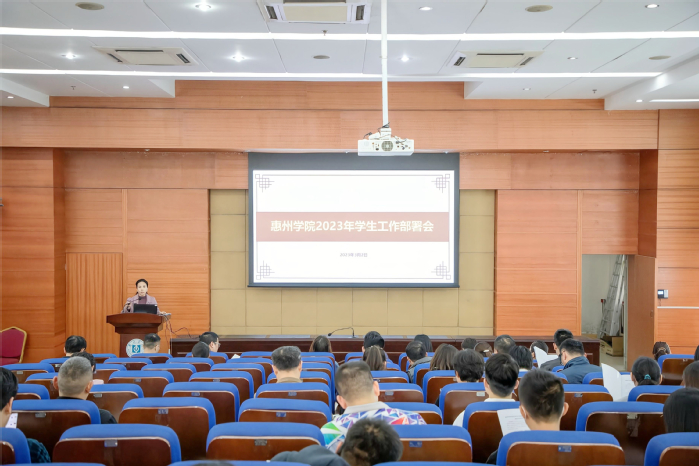 本网讯 3月2日下午,我校在文城会议厅召开2023年学生工作部署会议,学校党委副书记车小真,学生处、团委负责人,各二级学院党总支书记、副书记和全体辅导员参加会议。会议由学生处处长胡萍主持。