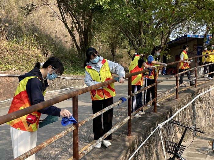 本网讯 时值三月雷锋月,为营造整洁文明的校园环境, 美化校园设施,进一步加强大学生新时代劳动教育,培育志愿服务理念,我校学生社区服务中心于3月11日开展“美好社区,你我共建”美化社区栏杆活动。