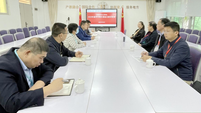 本网讯 3月6日,学校组织开展开课首日教学检查工作。学校党委书记、校长彭永宏,党委副书记、纪委书记、省监委驻惠州学院监察专员罗川山,副校长许玩宏、刘国栋、郑文及各职能部门负责人深入课堂看课、听课,并深入部分二级学院调研座谈,全面了解新学期教育教学情况。