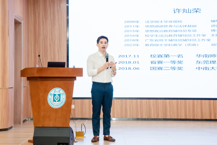 本次培训分为集中授课和体验培训两个阶段。在集中授课阶段,时代楷模、大连海事大学辅导员曲建武教授作《着力培养担当民族复兴大任的时代新人》思政主题报告。他结合自身40余年的学生工作经历,深情讲述了从事高校辅导员工作的心路历程,生动诠释了新时代教育工作者的爱祖国、爱教育、爱学生的赤诚情怀。华南理工大学辅导员徐喜春从辅导员所需具备的政治、心理和业务三大核心素养出发,全面分析当前辅导员面临的挑战,并结合个人经历分享辅导员职业成长道路。华南师范大学辅导员许灿荣从法治教育与校园危机应对的角度,分享了优秀辅导员的一线学生工作经验。