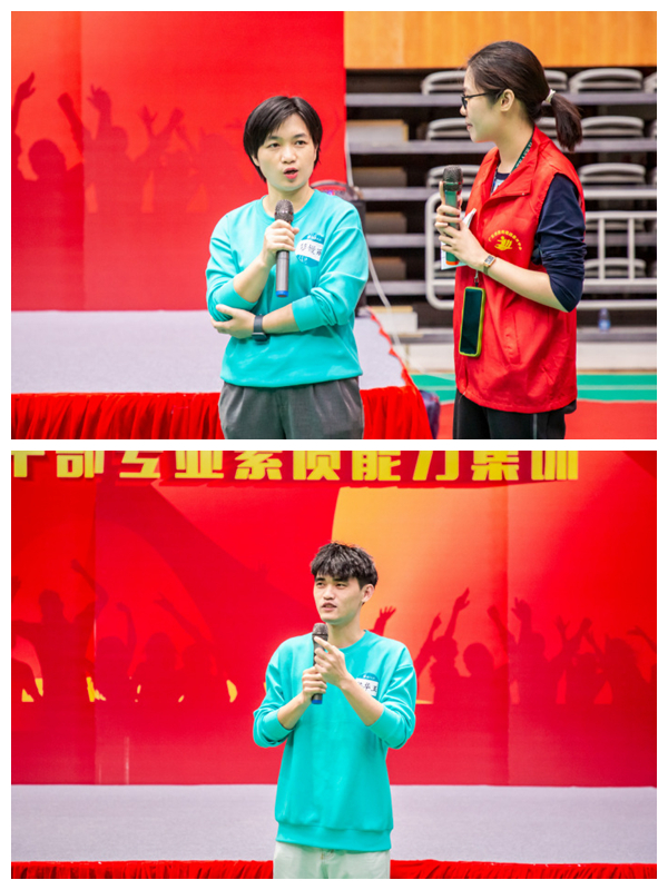 职业素养体验培训在全体学工干部的热身舞中拉开帷幕,全体参训学员在培训导师的带领下,体验了“心手相牵”“田忌赛马”“能工巧匠”“电台直播”等项目。通过辅导员分享、案例分析、团队游戏、情景剧等项目的参与和体验,加强了学员之间的沟通与协作,提升了团队的凝聚力和战斗力,进一步激发学工团队力量,强化团队归属感、参与感和获得感。其中,团队游戏“心手相牵”环节强调团队沟通和协作的重要性;情景剧“事务与事业”生动描述了辅导员日常细碎忙碌的工作状态,引导辅导员如何平衡事务和事业。在“田忌赛马”游戏环节,全体学工干部变身为一匹匹“战马”,为学生工作出谋划策、不停地“战斗”。