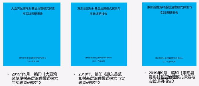 力推研究成果转化,提供社会治理决策咨询。中心邀请全国社会治理领域专家学者,联合地方基层政府,总结社会治理的理论创新、制度创新和实践创新经验。共同分享在社会治理领域的理论观点和实践经验,推动社会治理的理论与实践发挥积极作用,扩大惠州市乃至广东省社会治理理论与实践的社会影响。中心编辑出版社会治理专报和蓝皮书11部:专报以服务地方建设和社会发展为目标,为地方社会治理提供系统和权威的研究报告;蓝皮书则围绕社会治理的亮点、问题与对策等内容展开,针对社会组织、人口问题、基层治理、社会矛盾、网络治理和违法犯罪等领域开展定性、定量研究。