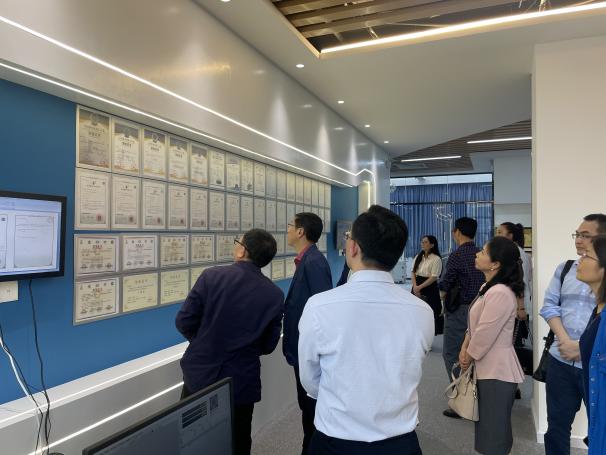 仲恺信息学院全体工作人员陪同参观了教师办公室、成果展示区及实训场地等,并介绍了仲恺信息学院的近期建设情况。会上,与会人员围绕仲恺信息学院建设情况及目前工作进展进行了讨论,相关部门领导就如何进一步调动教师积极性,夯实实习和毕业设计以及创新创业等方面给予具体指导。教务处处长陈益智表示,产业学院要在进一步打造高质量课程体系、特色化教材体系等方面下苦功,精准协同派驻教师完成校企联合开发教材等工作,提高成果显示度,并表示教务处将从质量工程项目等方面给予支持。学生处处长胡萍建议进一步对接校内创新创业平台,把企业技术需求导入学生创新创业工作中去,提升创新创业的实践效果。人事处副处长曾蔚阳表示,将结合仲恺信息学院对派驻教师的需求情况,优化职称评定中的挂职要求和横向项目合作要求,鼓励更多青年教师参与产业学院建设。