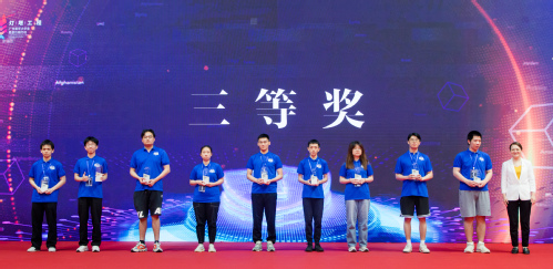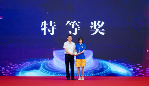 团省委学校部部长、统战联络部部长饶玲为三等奖获奖团队颁奖