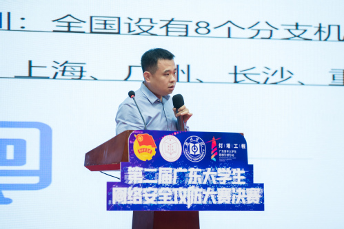 比赛当天,网络空间安全领军人才安络公司副总裁肖坚炜分享了他的从业生涯故事。暨南大学和深圳市安络科技有限公司2个单位接受第二批广东青年大学生网络空间安全人才实训基地授牌。