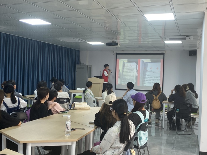 本网讯 为进一步深化大学生理想信念教育,引领大一学生扣好入党“第一粒扣子”,实现党员发展早选苗、早教育、早衔接、早培养,引导学生提高政治觉悟与思想素质,端正入党动机、积极向党组织靠拢,我校北苑学生社区服务中心充分发挥朋辈引领作用,于3月24日在北苑社区开展了入党启蒙教育活动。本次活动由音乐学院承办,音乐学院党总支学生党支部宋海辉同学主讲,音乐学院第二届青马班成员,2021级、2022级各班班干部参加活动。